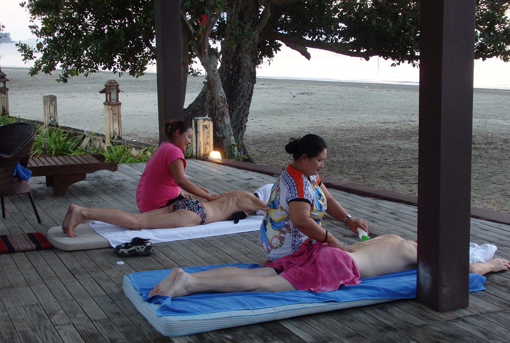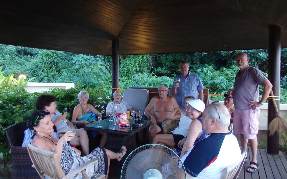 PM2 med damer åkte till Krabi för att hälsa på Leif och Margareta och de hade hyrt några grannhus så att vi alla