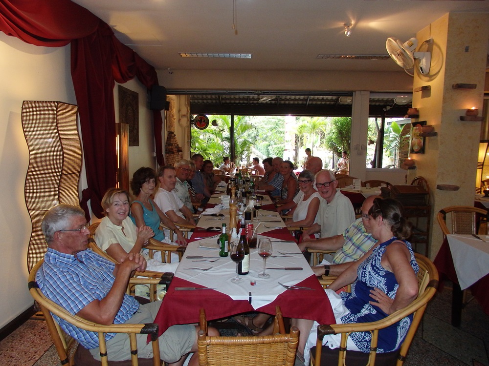 Glada miner i väntan på maten på restaurang Carnevor i AoNang. Där äter vi alla en härlig anrättning med gott och mört kött.